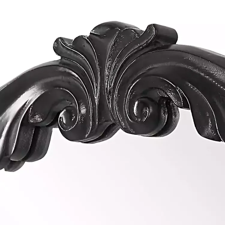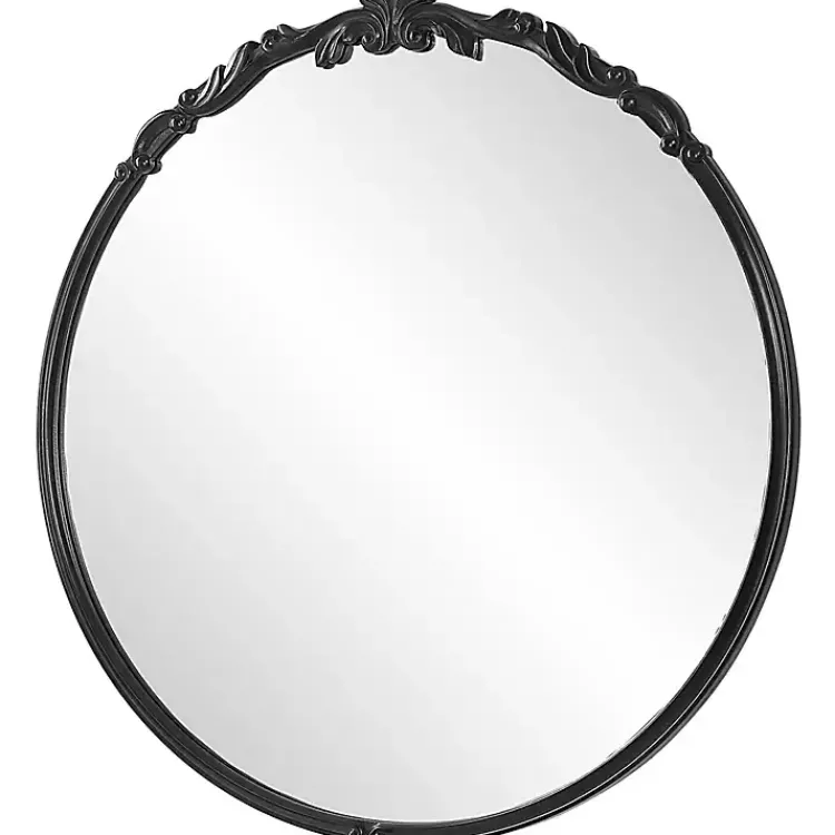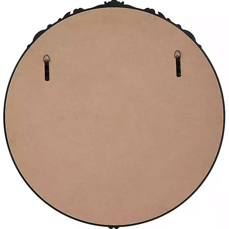 Dress up any wall with this Satin Black Ornate Round Wall Mirror. Featuring charming details, this mirror will bring beauty and dimension to your space!