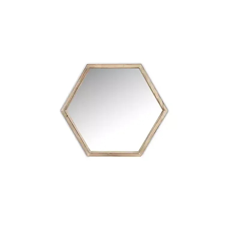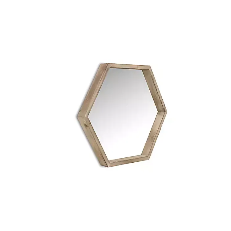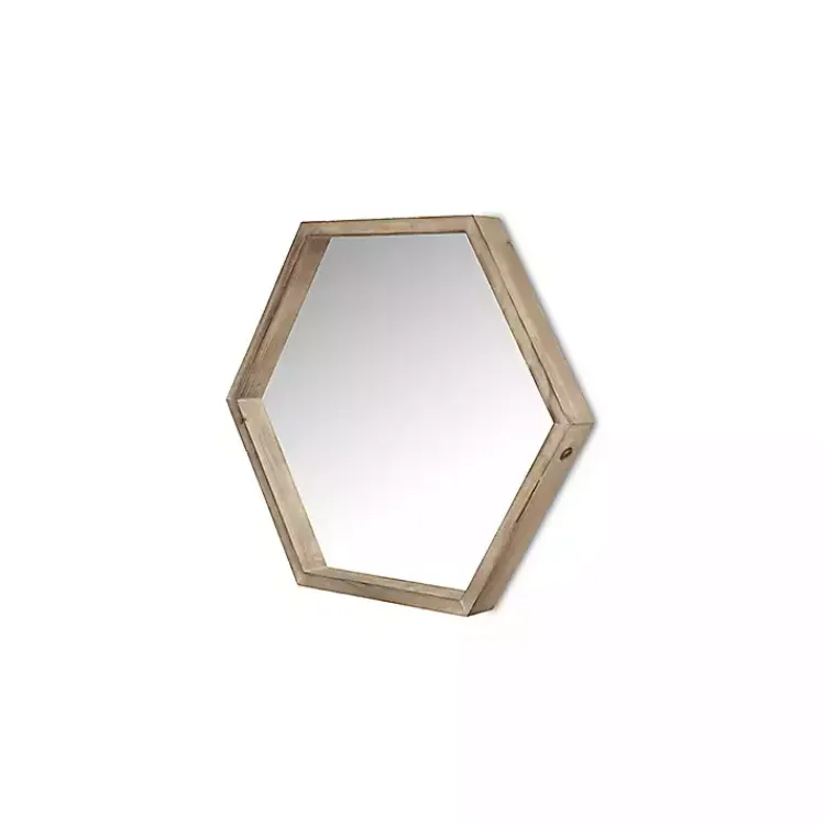 Renew your rustic decor with the modern lines of our Wooden Hexagon Wall Mirror! Set in a wooden frame, this mirror has an organic style that opens up the room.