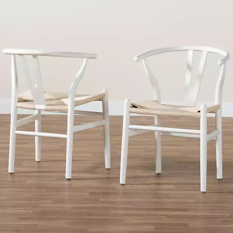 These White and Tan Wishbone Dining Chairs will bring a refreshing look to your table! With an ergonomic design and charming woven seats, you can enjoy casual comfort and beautiful style during every meal!