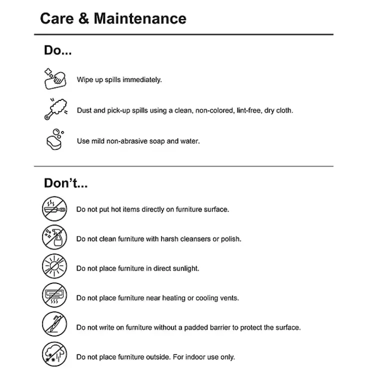 - Care: Wipe clean with damp cloth. Use coasters, placemats or trivets to help prevent marks or stains.