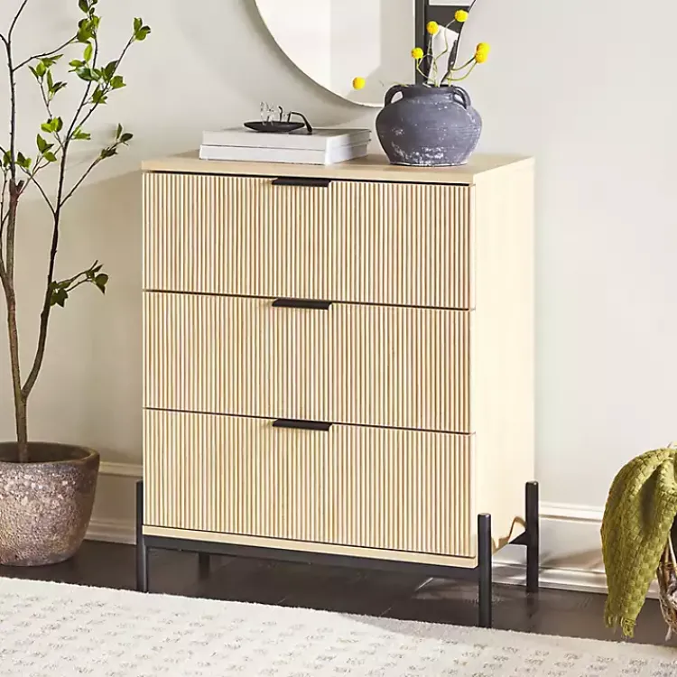 Bring a mid-century look into your home with this Coastal Oak Reeded 3-Drawer Dresser! The durable materials ensure it will hold up to everyday use, while the reeded wood drawer fronts add a unique detail that elevates its design.