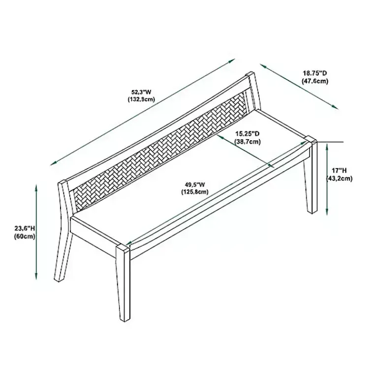 - Bench measures 52.4L x 18.75W x 23.4H in.