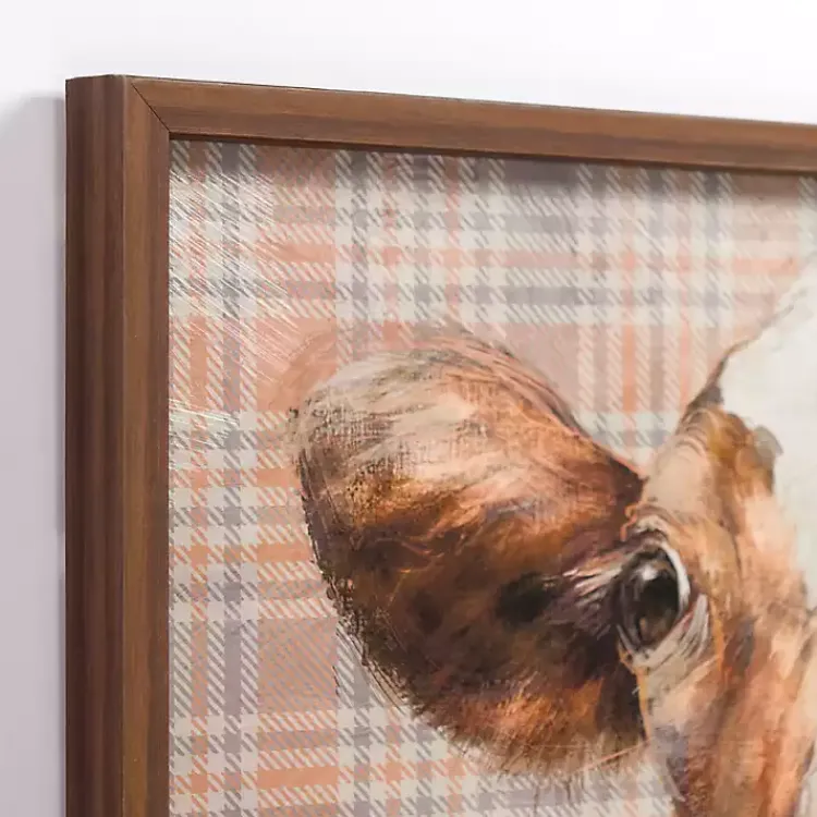 Framed Art-Kirklands Home Plaid Cow Close-Up Framed Art Print
