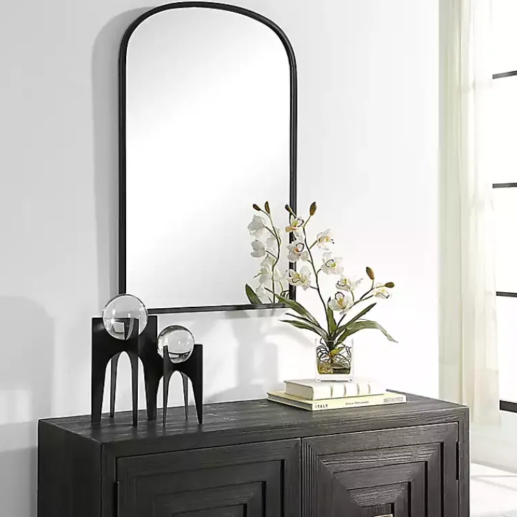 Take one last look before heading out the door with our Black Simple Round Top Wall Mirror! The simple and chic design will look great in your entryway.