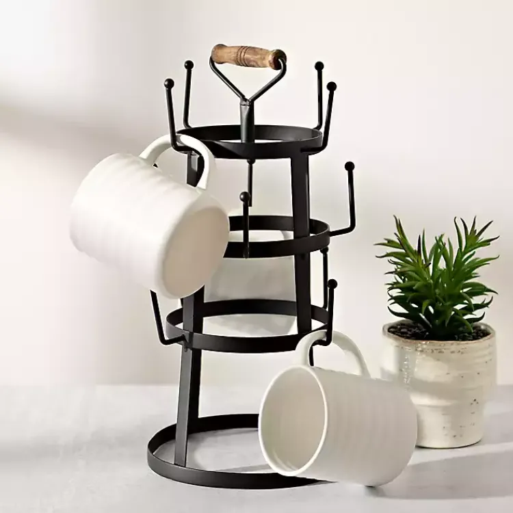 Put your coffee companions on display with our Bronze Metal Mug Holder with Wooden Handle! Tuck under the cabinets or on your bar cart for convenience!