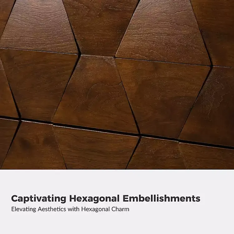 Upgrade your bedroom with this Walnut Geometric 2-Drawer Charging Nightstand! The rich walnut finish and hexagonal design will instantly elevate your room with a mid-century modern touch. You’ll love the integrated charging outlets for your bedside essentials!