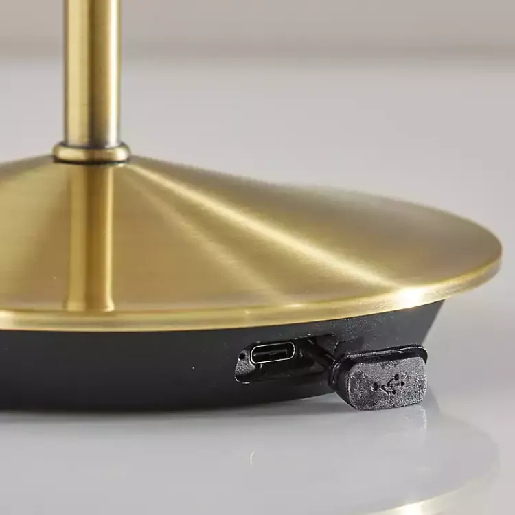 Bring a little light with you wherever you go with this Brass Metal Rattan Shade Cordless Table Lamp! With its rechargeable bulb, protection against water, and small design, this stylish lamp can be used anywhere, from your desk to your patio!