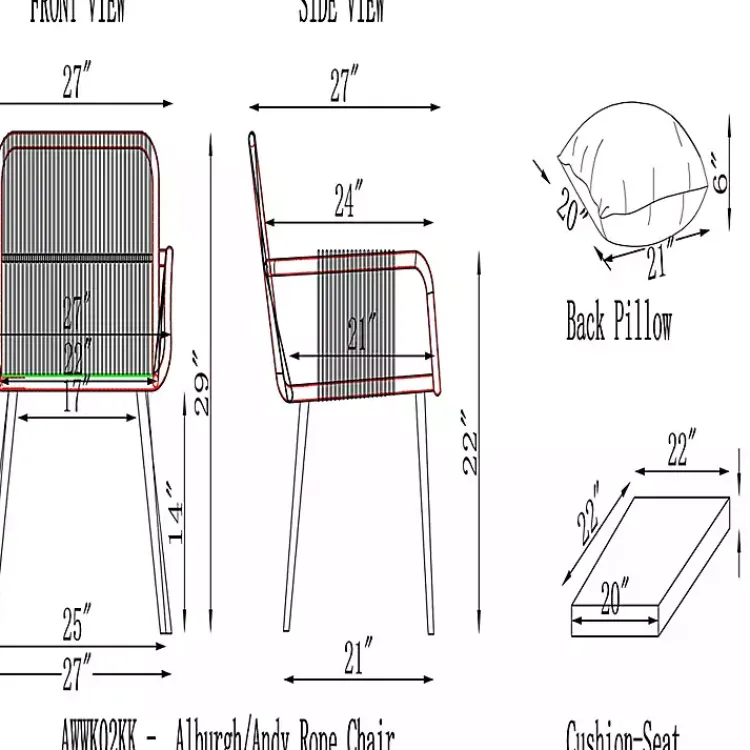 - Chairs measure 27L x 27W x 29H in. each