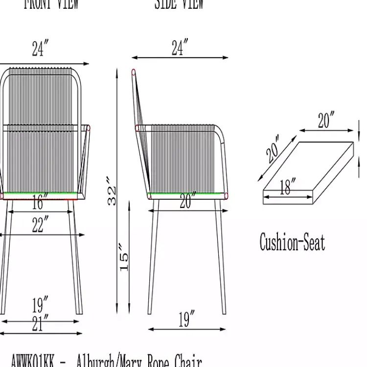 - Chairs measure 24L x 24W x 32H in. each