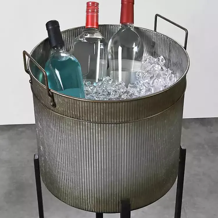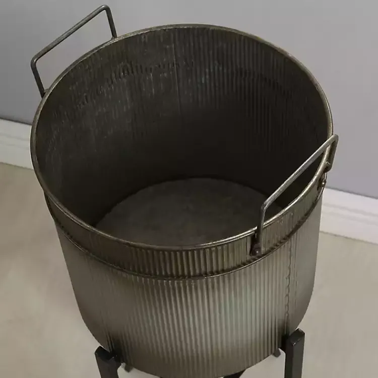 Display beautiful blooms with our Galvanized Black Planters with Stands! You can also use these planters as a beverage bucket at your next garden gathering.
