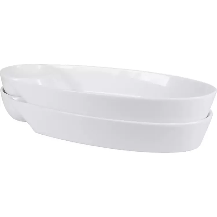 Set includes two (2) bowls Each bowl measures 15.2L x 6.2W x 2.3H in.Crafted of porcelain White finishOval shapeFeature …