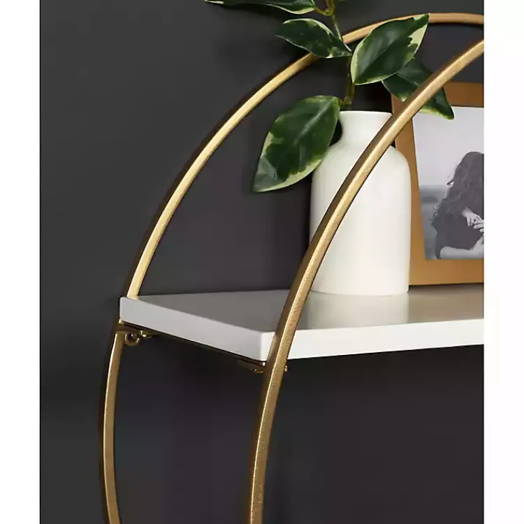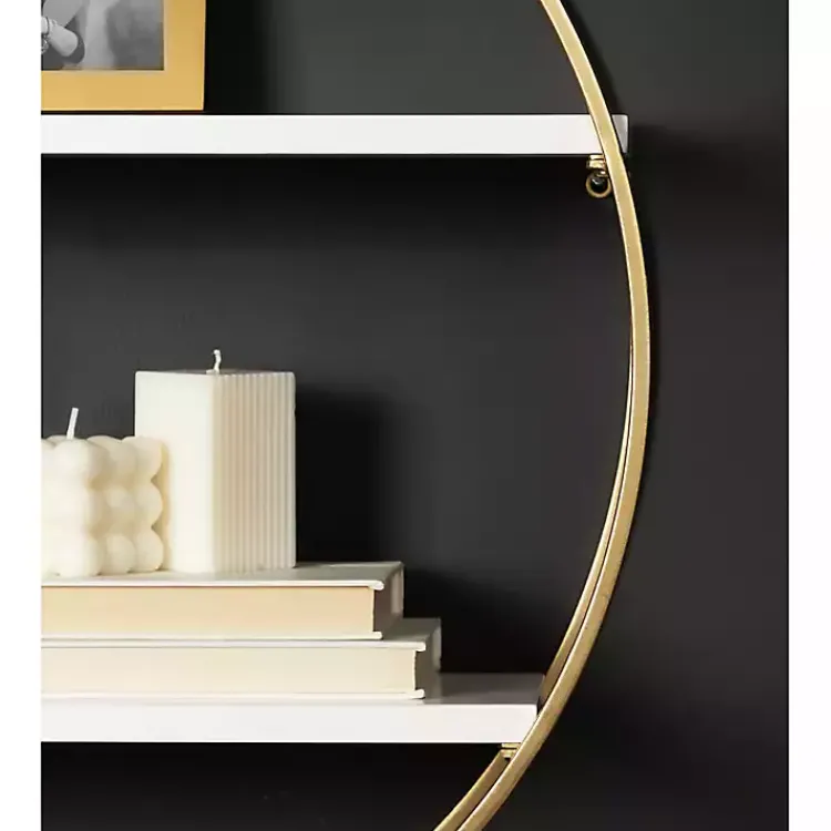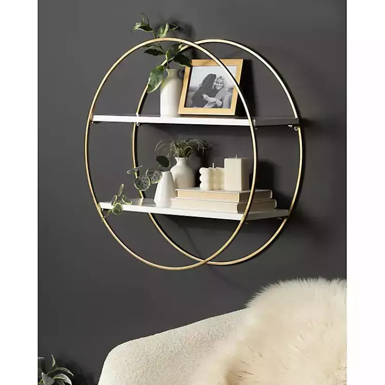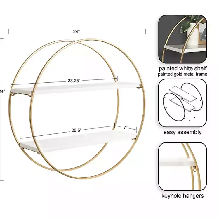 Add some geometry and function to your home with the Round White Wood Sequoia Wall Shelf. Created with a round metal frame and two wooden shelf tiers, the Sequoia is a perfect storage solution that also brings sophisticated dimension to your decor scheme.