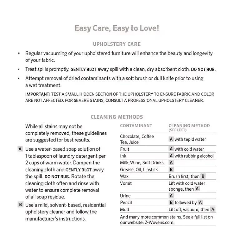 - Care: Treat spills promptly. Vacuum regularly to enhance the beauty and longevity of the fabric. For severe stains, consult a professional upholstery cleaner.