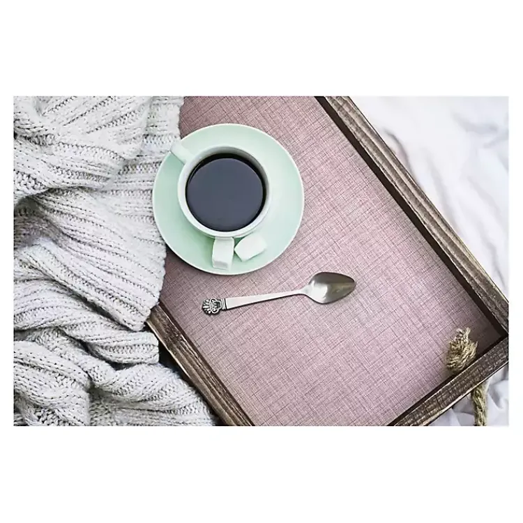 - Features a textured faux linen design
