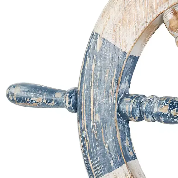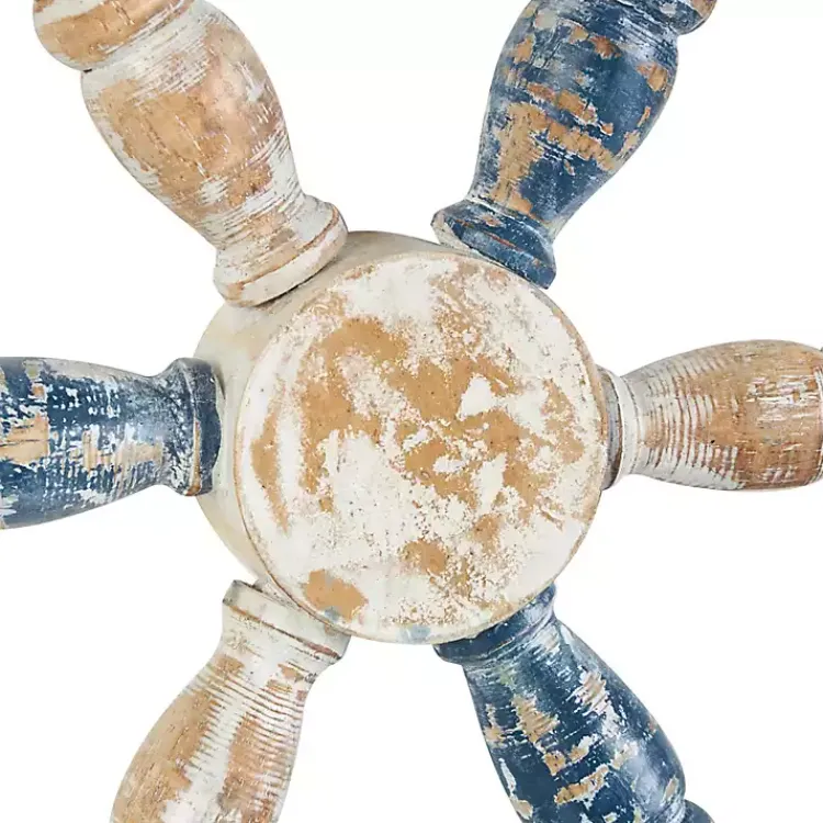 With a distressed finish, this Blue and White Ship Wheel Wall Plaque invokes a nautical charm that adds character to any space. It will bring the allure of the sea to your home!