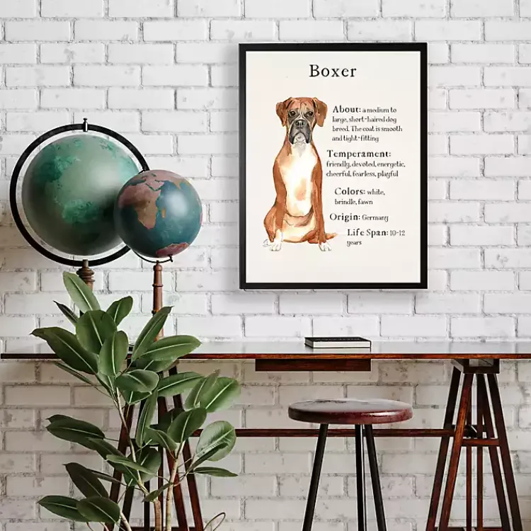 Include your favorite furry friend in your home decor with this Boxer Facts Framed Wall Plaque. Its adorable design also makes a perfect gift for any boxer owner!