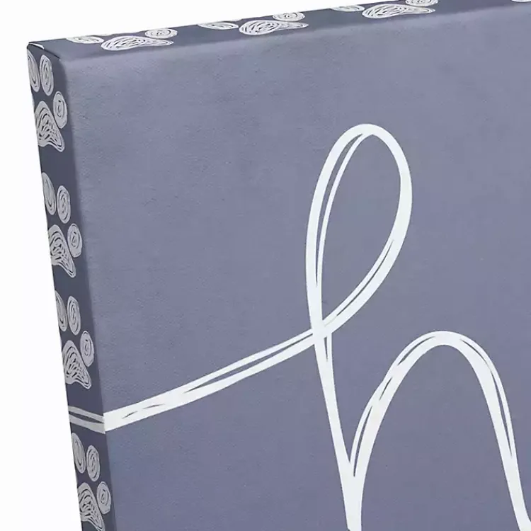 - Features the phrase “Home is where someone runs to greet you” and paw prints